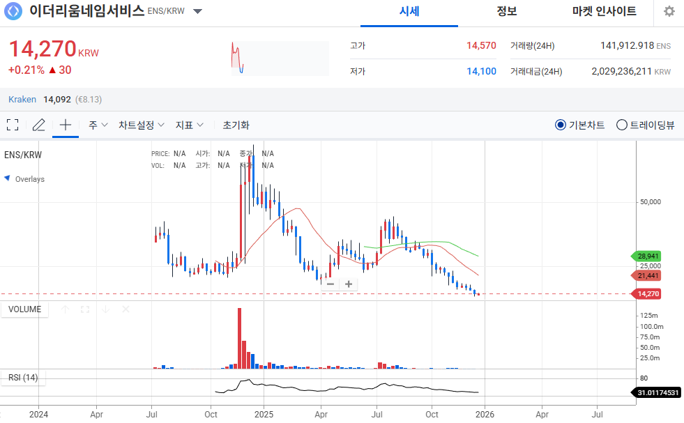 이더리움네임서비스만 예시로 아무거나 클릭해서 가져왔는데요. 다른 알트코인들 또한 똑같습니다.